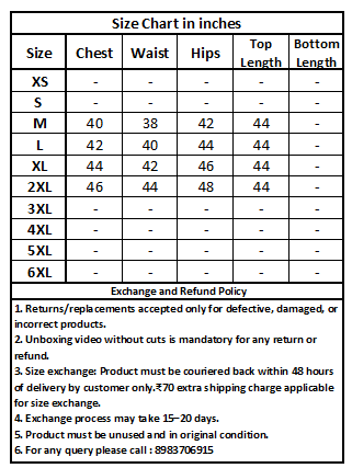 Size exchange: Product must be couriered back within 48 hours of delivery by customer only.₹70 extra shipping charge applicable for size exchange.