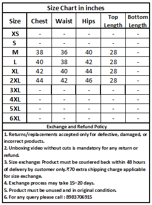 Size exchange: Product must be couriered back within 48 hours of delivery by customer only.₹70 extra shipping charge applicable for size exchange.