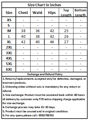 Size exchange: Product must be couriered back within 48 hours of delivery by customer only.₹70 extra shipping charge applicable for size exchange.