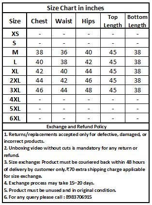 Size exchange: Product must be couriered back within 48 hours of delivery by customer only.₹70 extra shipping charge applicable for size exchange.