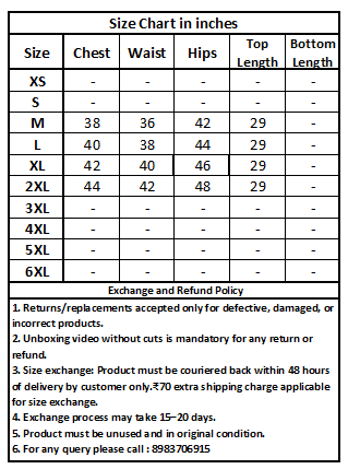 Size exchange: Product must be couriered back within 48 hours of delivery by customer only.₹70 extra shipping charge applicable for size exchange.